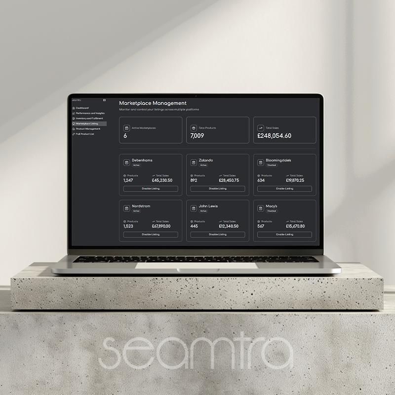 Seamtra keeps your catalogue synced, your listings accurate, and your sales performance transparent, giving you instant clarity on how your brand is trading across every marketplace.
